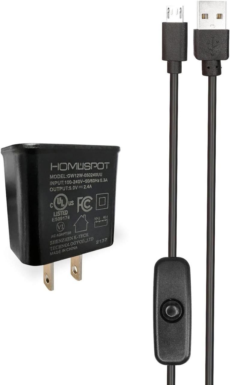 - HomeSpot 5V 2.4A Power Supply / Adapter / Charger (UL Listed) with 5ft Long Micro USB Cable with On Off Switch Button