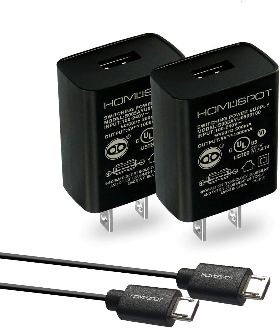 - HomeSpot Sync & Charge 2 Pack Micro-USB to USB Cable - 6.6ft (2M) Extra Long Charging Cable with US 5V1A USB Wall Charger Black