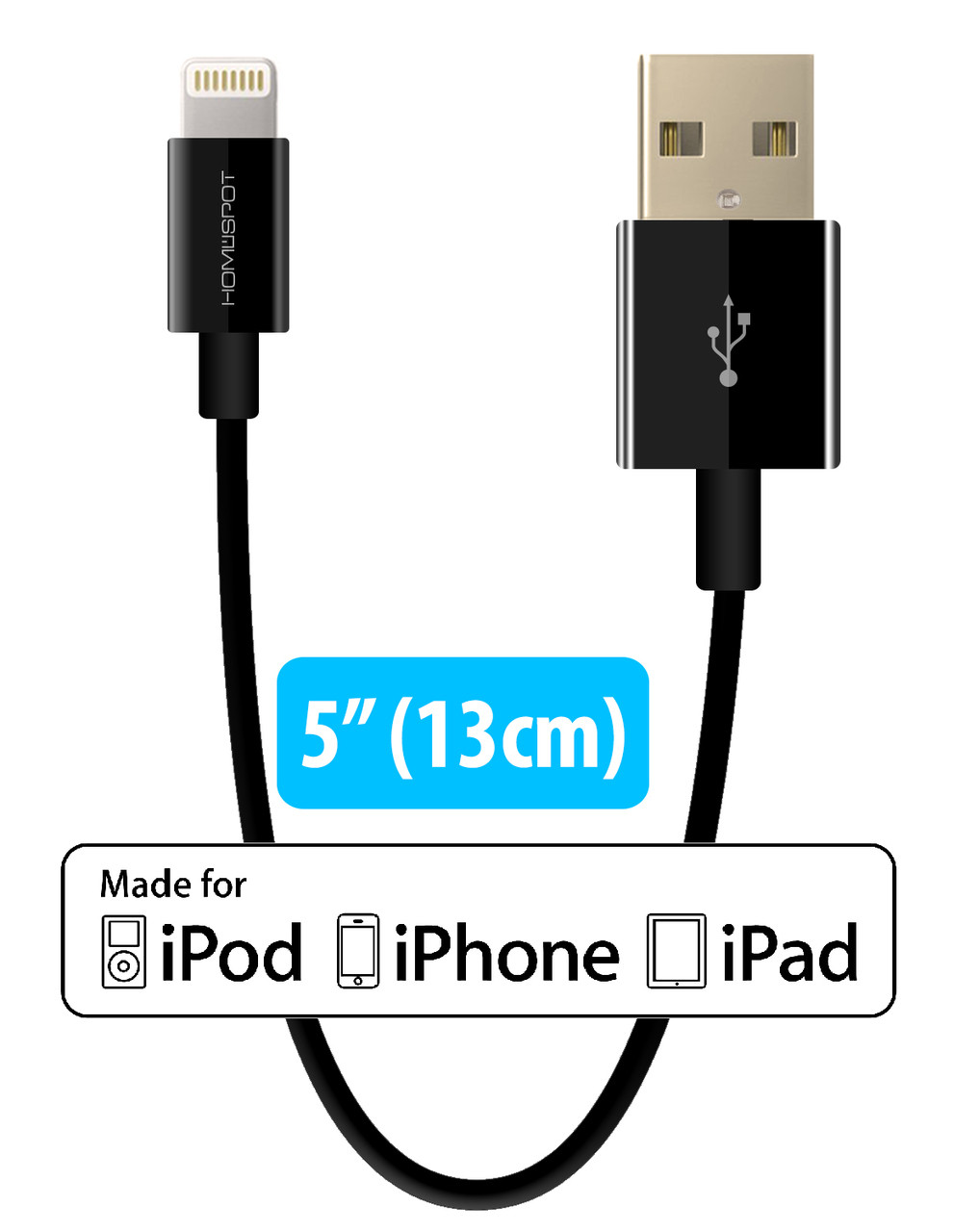 Short iPhone Charger Lightning Cable Charging Cord MFI by HomeSpot 5" Short Length Certified for iPhone X / 8 / 8 Plus / 7 / 7 Plus / 6 / 6 Plus / 5S iPad Air / Air 2 / Pro (1 Pack - Black)